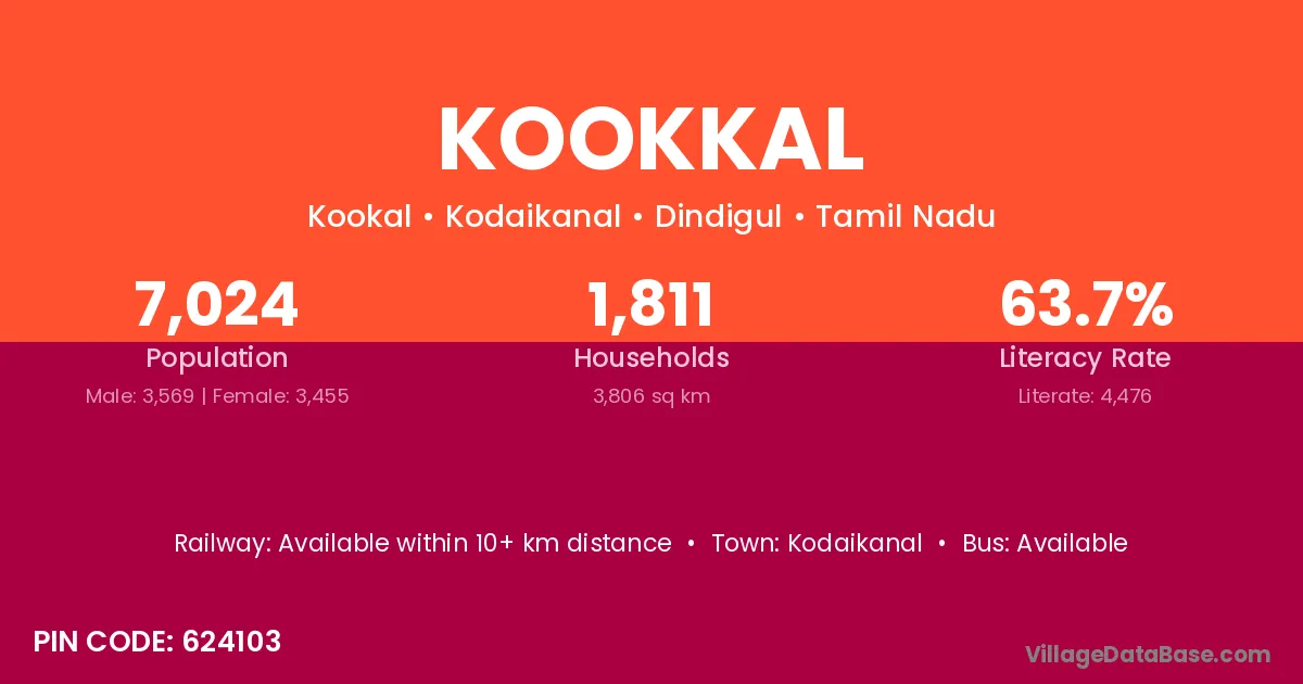 According to Census 2011 information, the village code of Kookkal village is 624103.
