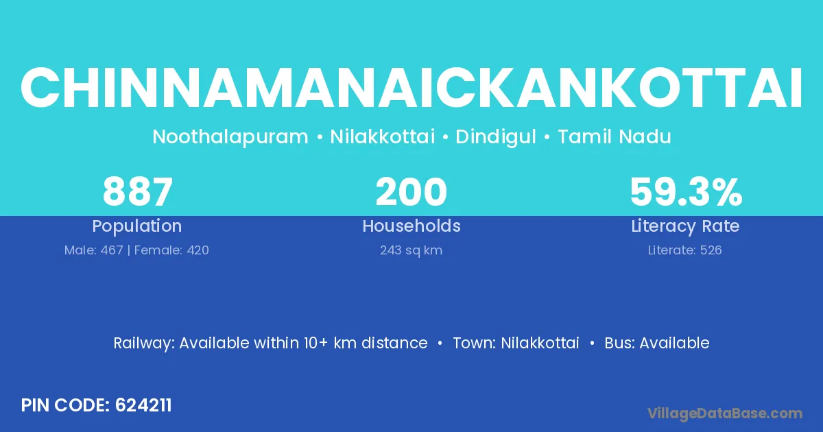 Chinnamanaickankottai village has a total population of 887 people, of which 467 are males and 420 are females.
