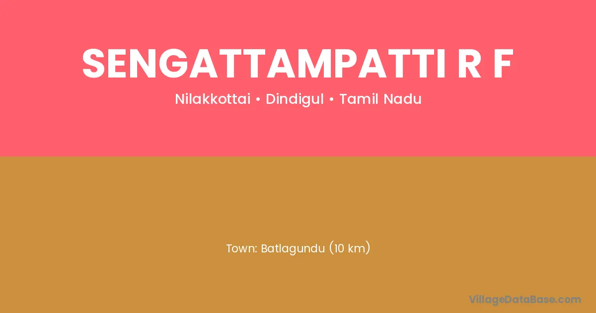 Batlagundu (10 km) is the nearest town to Sengattampatti R F village for major economic activities and is located approximately 10 km away.