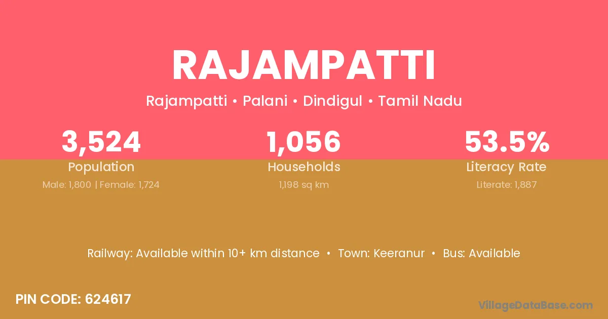 According to Census 2011 information, the village code of Rajampatti village is 624617.
