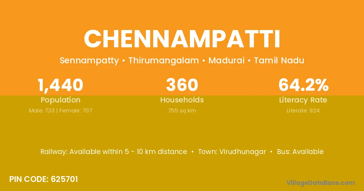 There are approximately 2,728 households in Chennampatti village.