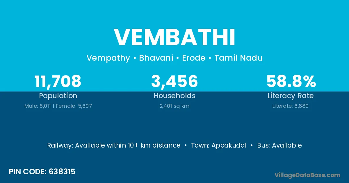 According to Census 2011 information, the village code of Vembathi village is 638315.