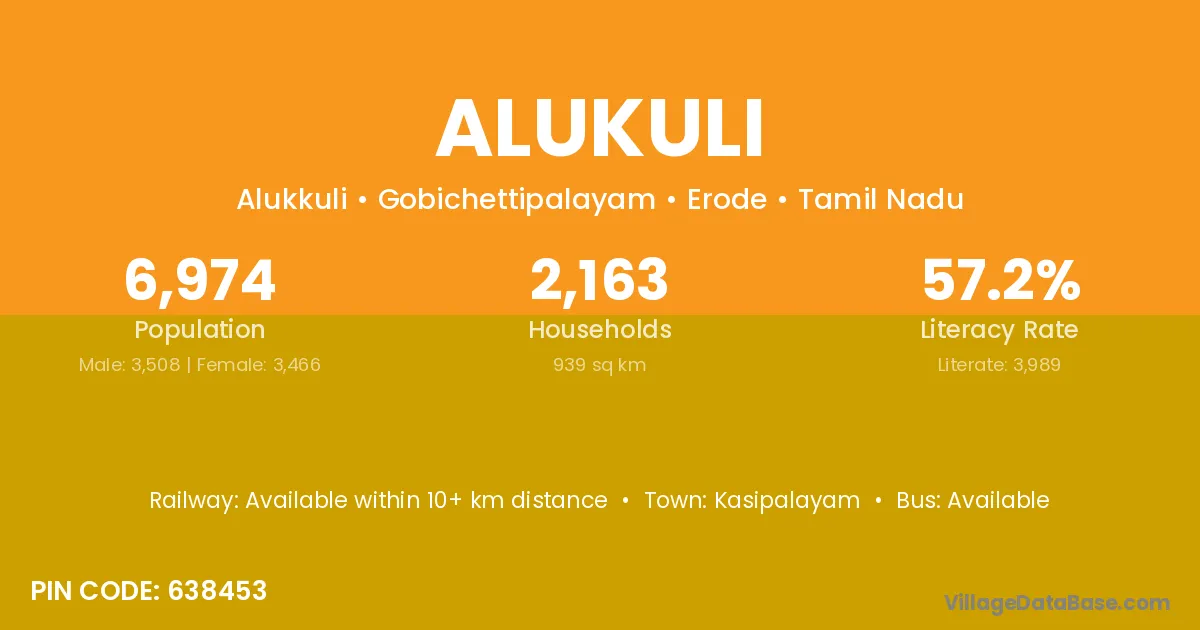 Kasipalayam is the nearest town to Alukuli village for major economic activities