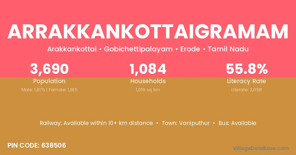 Arrakkankottaigramam village has a total population of 3,690 people, of which 1,875 are males and 1,815 are females.