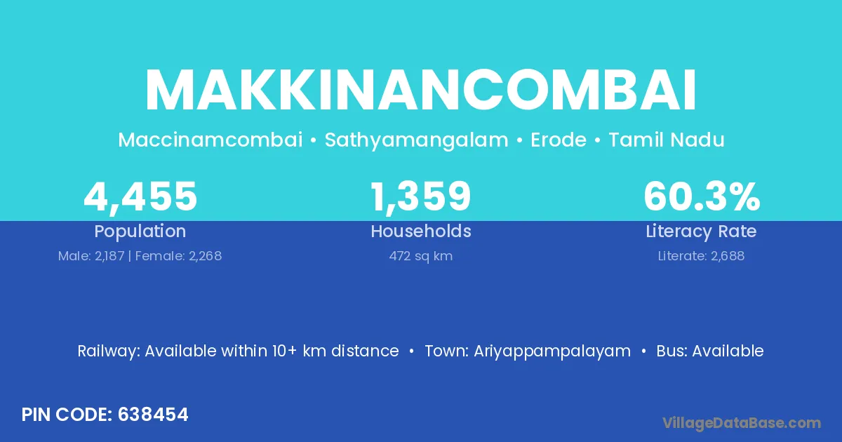 According to Census 2011 information, the village code of Makkinancombai village is 638454.