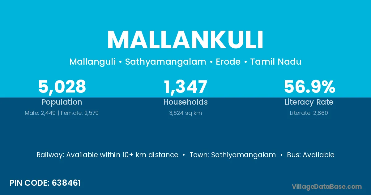 Sathiyamangalam is the nearest town to Mallankuli village for major economic activities