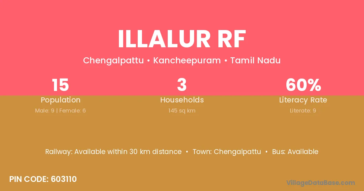 Illalur Rf village has a total population of 15 people, of which 9 are males and 6 are females.