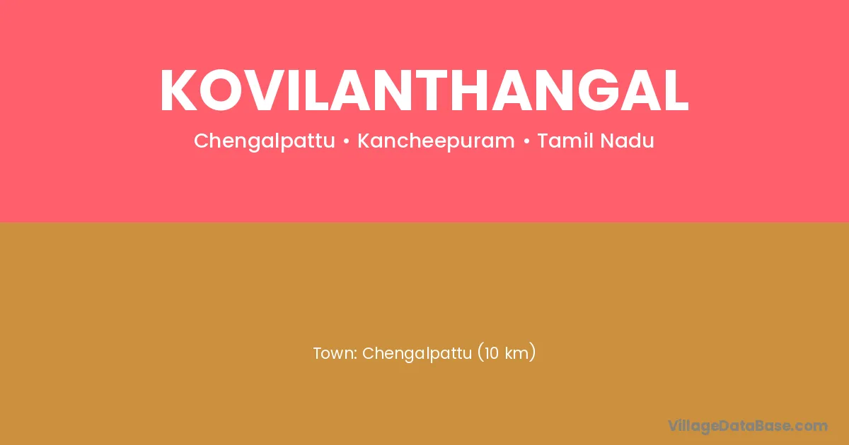 Chengalpattu (10 km) is the nearest town to Kovilanthangal village for major economic activities and is located approximately 10 km away.