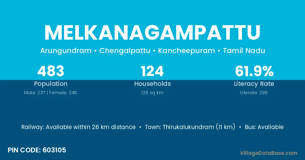 Melkanagampattu village has a total population of 483 people, of which 237 are males and 246 are females.