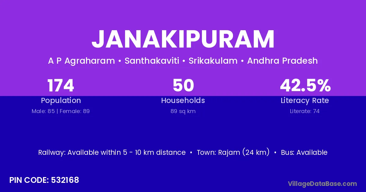 Karunguli (5 km) is the nearest town to Janakipuram village for major economic activities and is located approximately 5 km away.