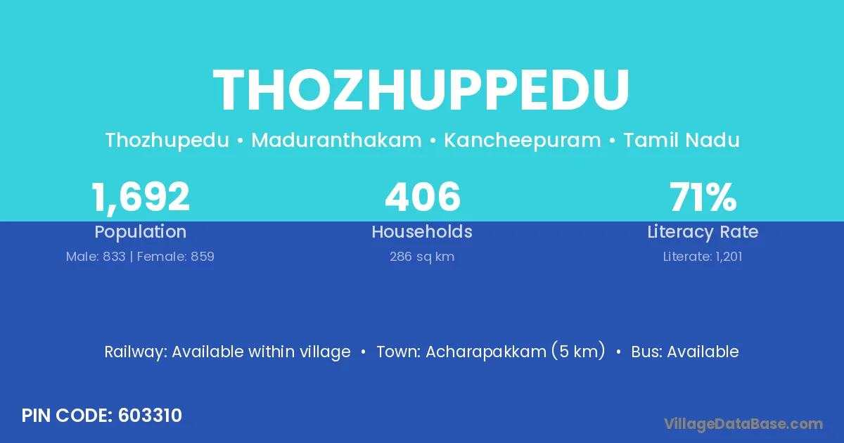 There are approximately 406 households in Thozhuppedu village.