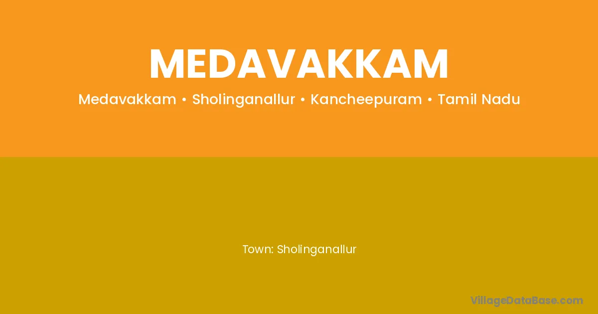 Sholinganallur is the nearest town to Medavakkam village for major economic activities
