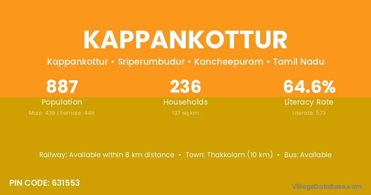 Thakkolam (10 km) is the nearest town to Kappankottur village for major economic activities and is located approximately 10 km away.