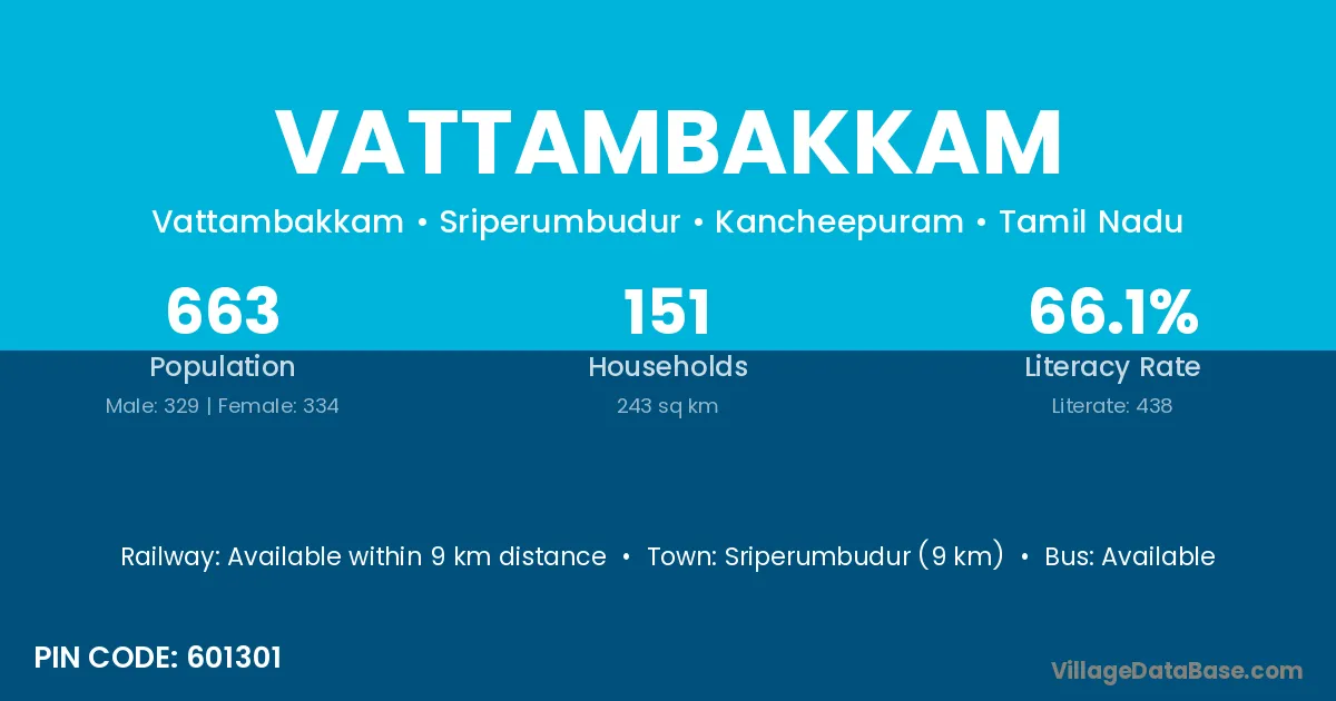 Vattambakkam village has a total population of 663 people, of which 329 are males and 334 are females.