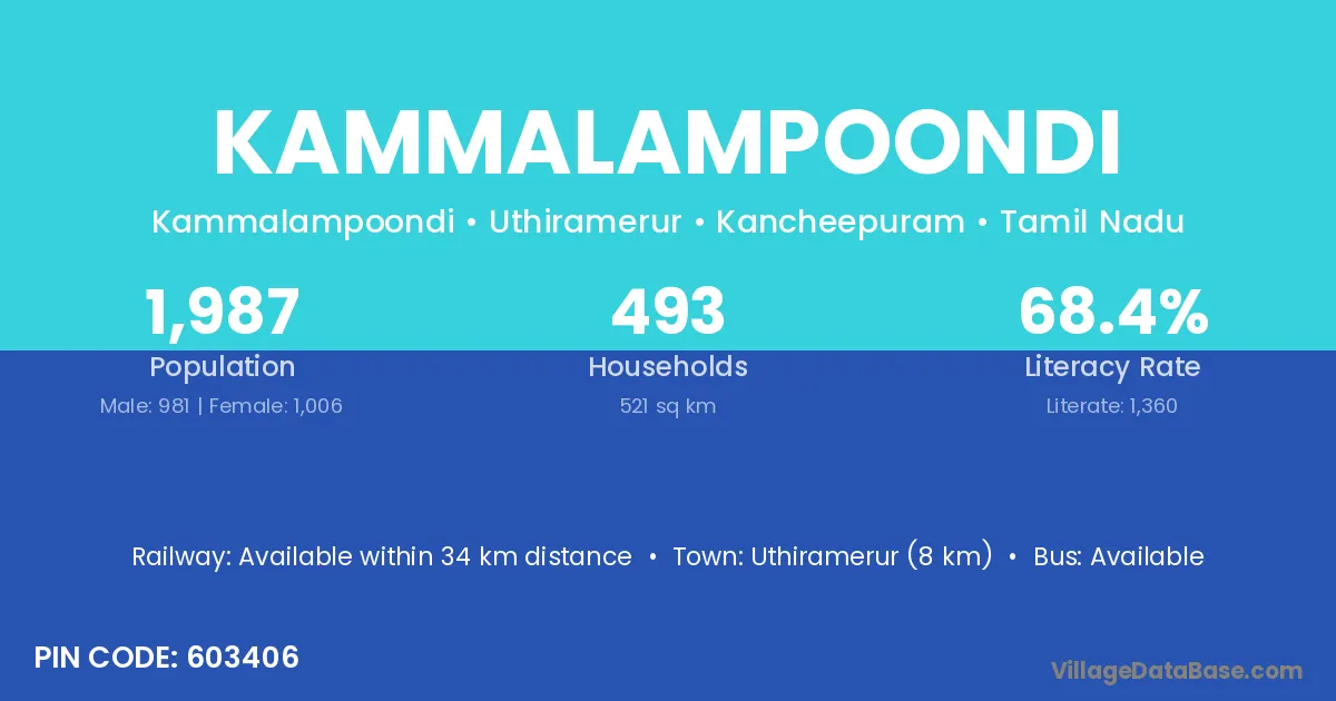 Kammalampoondi village has a total population of 1,987 people, of which 981 are males and 1,006 are females.