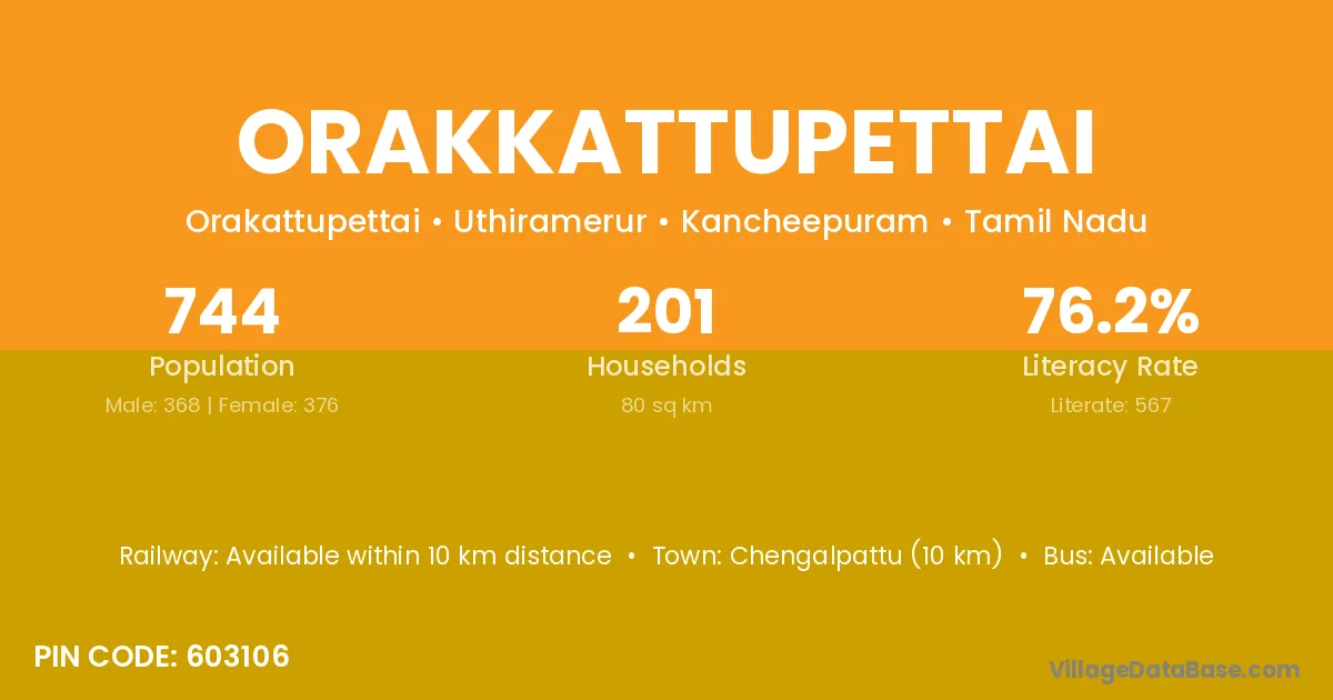 Orakkattupettai village has a total population of 744 people, of which 368 are males and 376 are females.