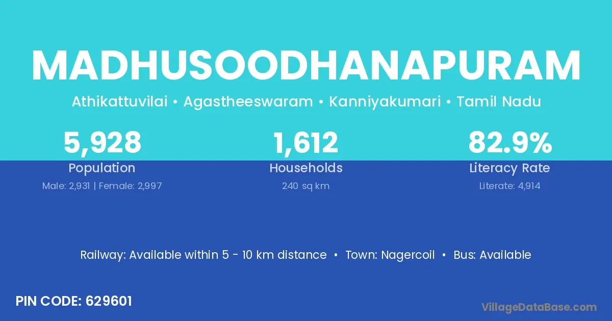 Nagercoil is the nearest town to Madhusoodhanapuram village for major economic activities