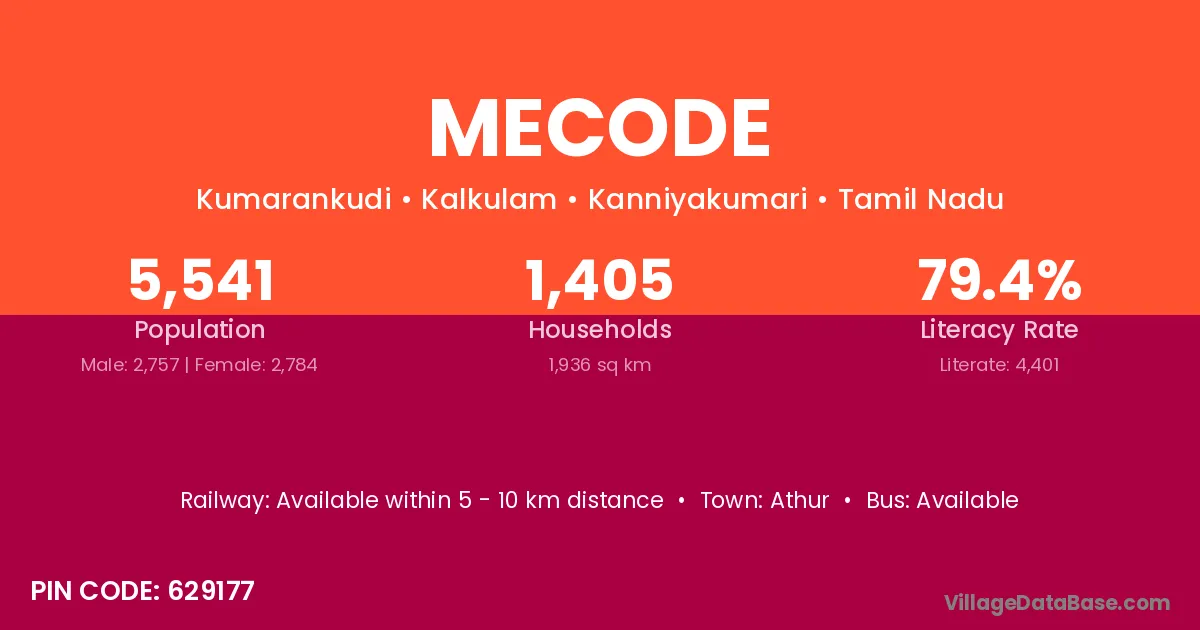 According to Census 2011 information, the village code of Mecode village is 629177.