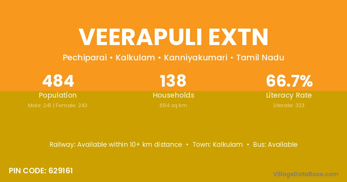 Veerapuli Extn village has a total population of 484 people, of which 241 are males and 243 are females.