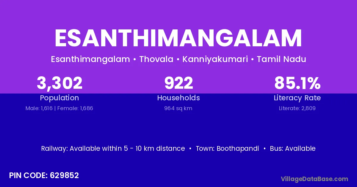 Boothapandi is the nearest town to Esanthimangalam village for major economic activities