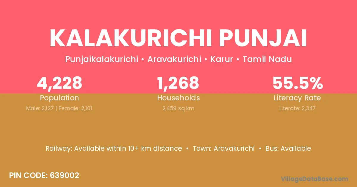 Kalakurichi Punjai village is located in the Aravakurichi Taluka of the Karur district in Tamil Nadu .