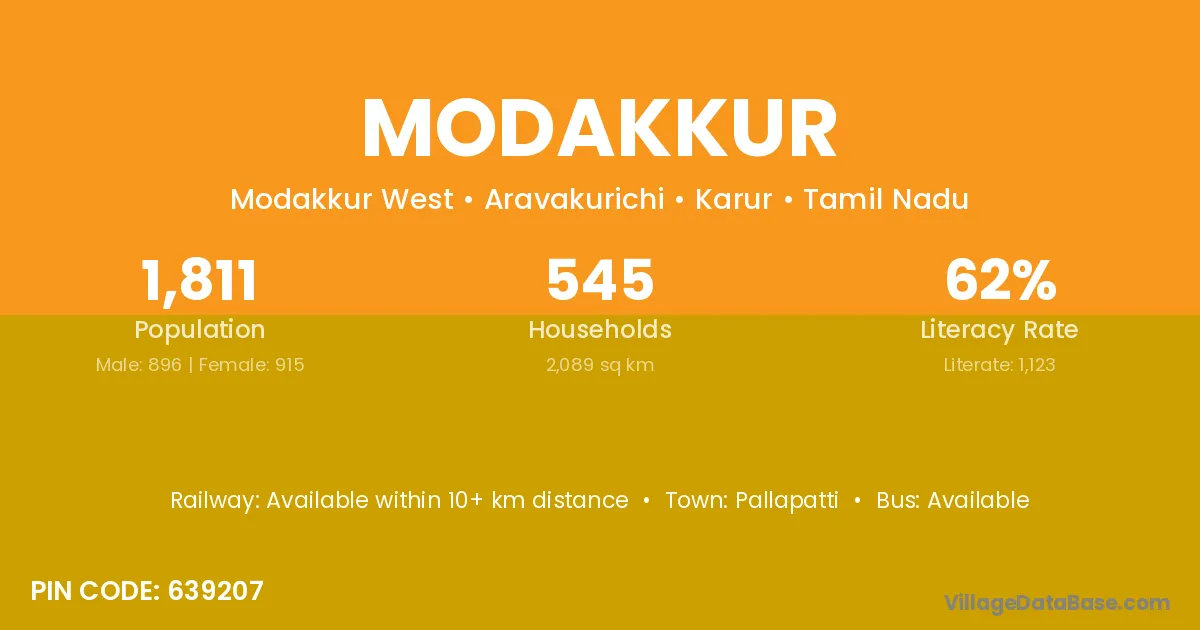 Pallapatti is the nearest town to Modakkur village for major economic activities