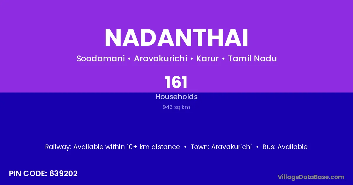 Aravakurichi is the nearest town to Nadanthai village for major economic activities