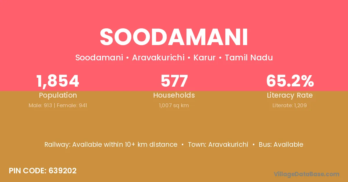Aravakurichi is the nearest town to Soodamani village for major economic activities