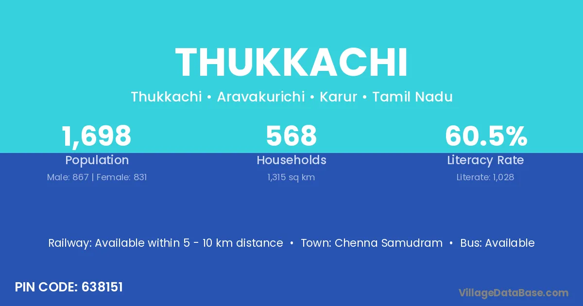 Thukkachi village has a total population of 1,698 people, of which 867 are males and 831 are females.