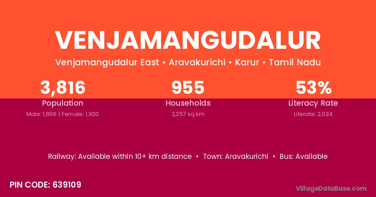 Aravakurichi is the nearest town to Venjamangudalur village for major economic activities