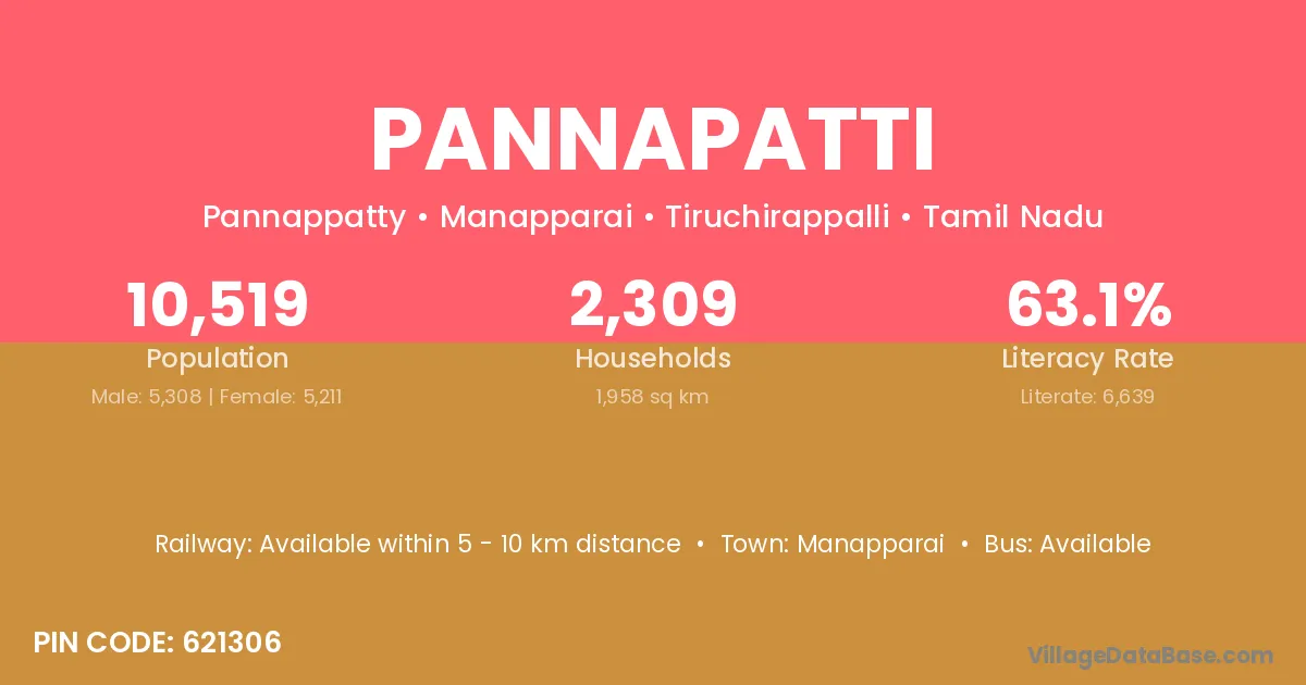According to Census 2011 information, the village code of Pannapatti village is 621301.