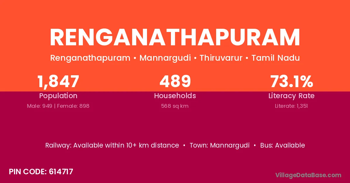 Renganathapuram village has a total population of 3,070 people, of which 1,467 are males and 1,603 are females.