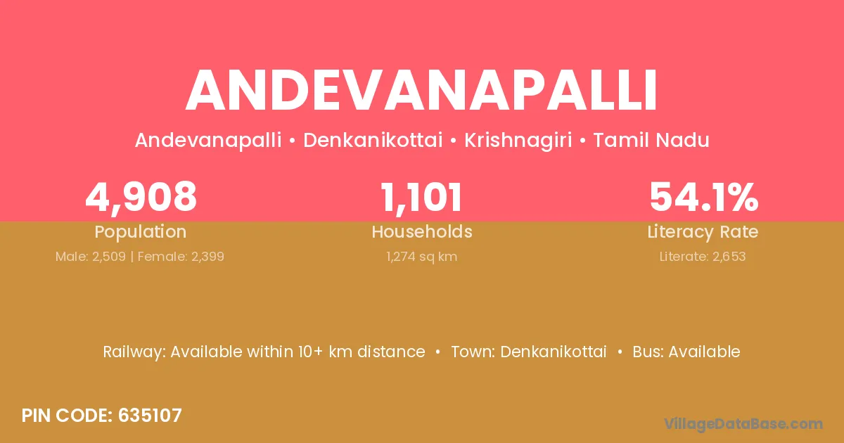 Andevanapalli village is located in the Denkanikottai Taluka of the Krishnagiri district in Tamil Nadu .