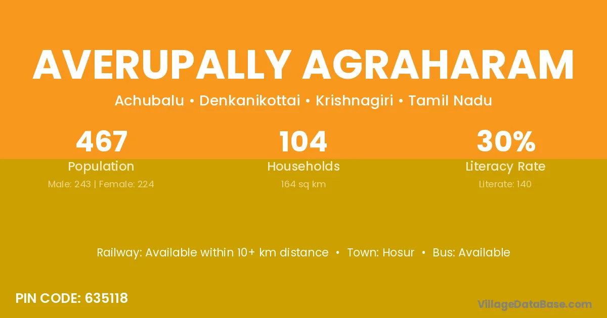 Hosur is the nearest town to Averupally Agraharam village for major economic activities