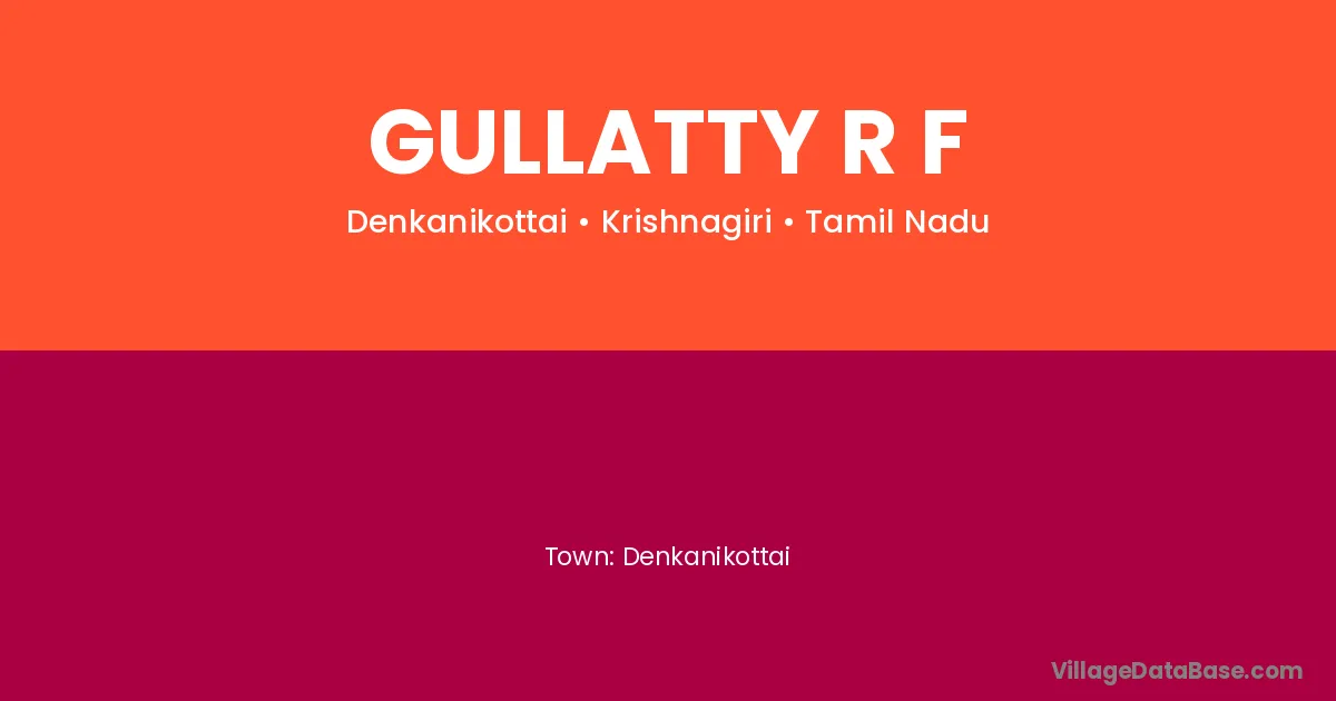 Denkanikottai is the nearest town to Gullatty R F village for major economic activities