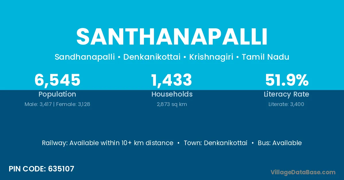Denkanikottai is the nearest town to Santhanapalli village for major economic activities