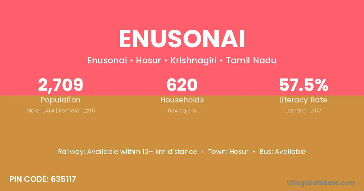 Hosur is the nearest town to Enusonai village for major economic activities