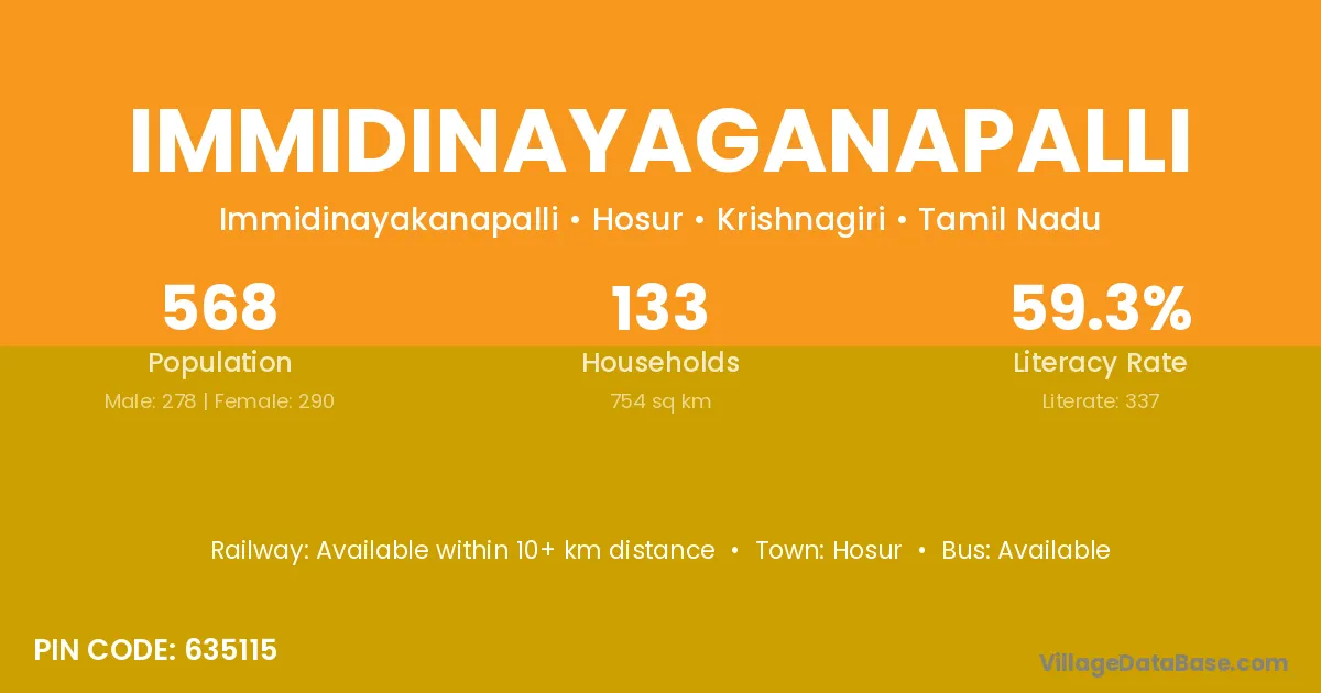 Hosur is the nearest town to Immidinayaganapalli village for major economic activities
