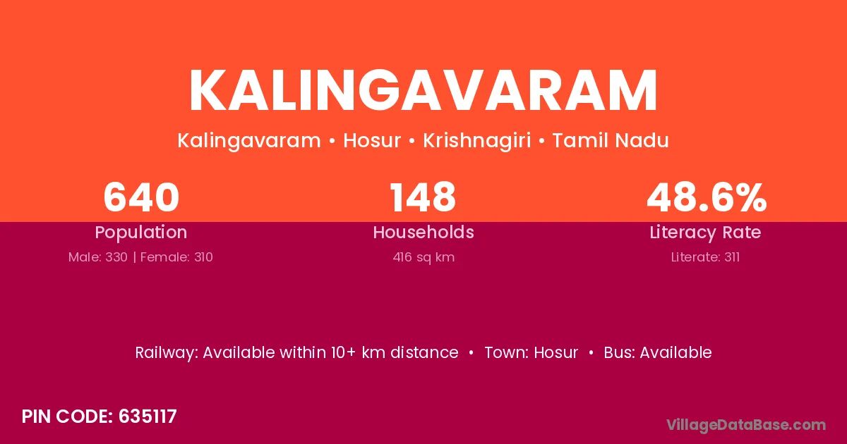 Hosur is the nearest town to Kalingavaram village for major economic activities