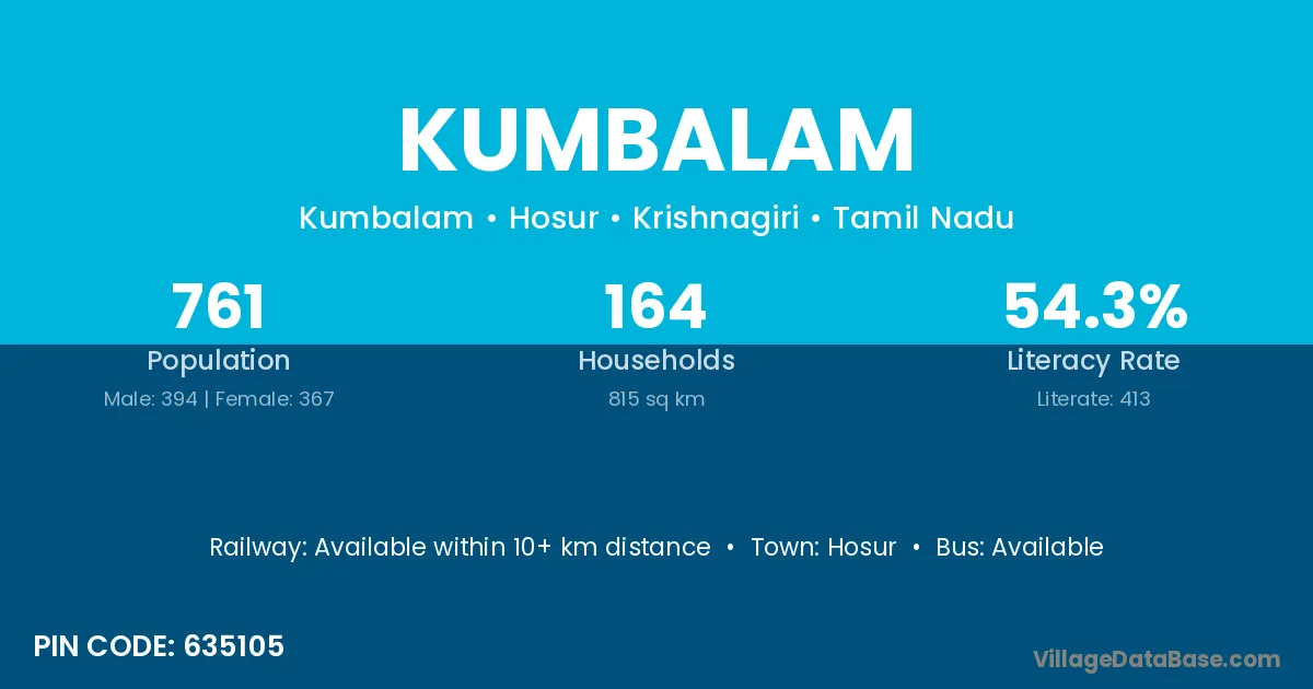 Hosur is the nearest town to Kumbalam village for major economic activities