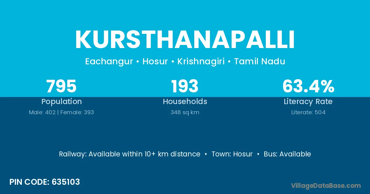 Hosur is the nearest town to Kursthanapalli village for major economic activities