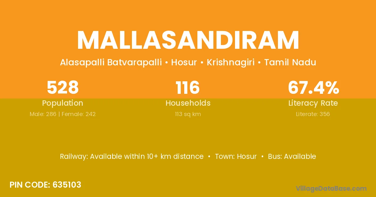 According to Census 2011 information, the village code of Mallasandiram village is 635103.