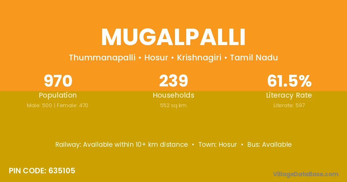 According to Census 2011 information, the village code of Mugalpalli village is 635105.