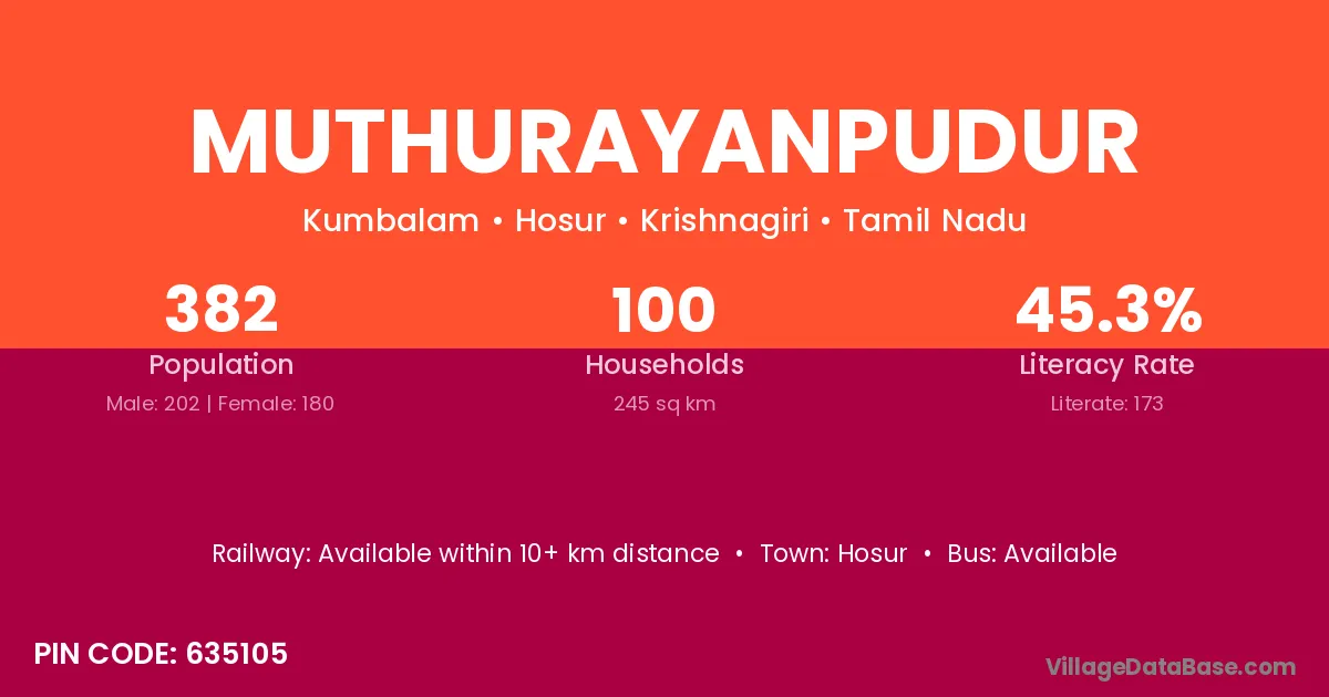 Hosur is the nearest town to Muthurayanpudur village for major economic activities