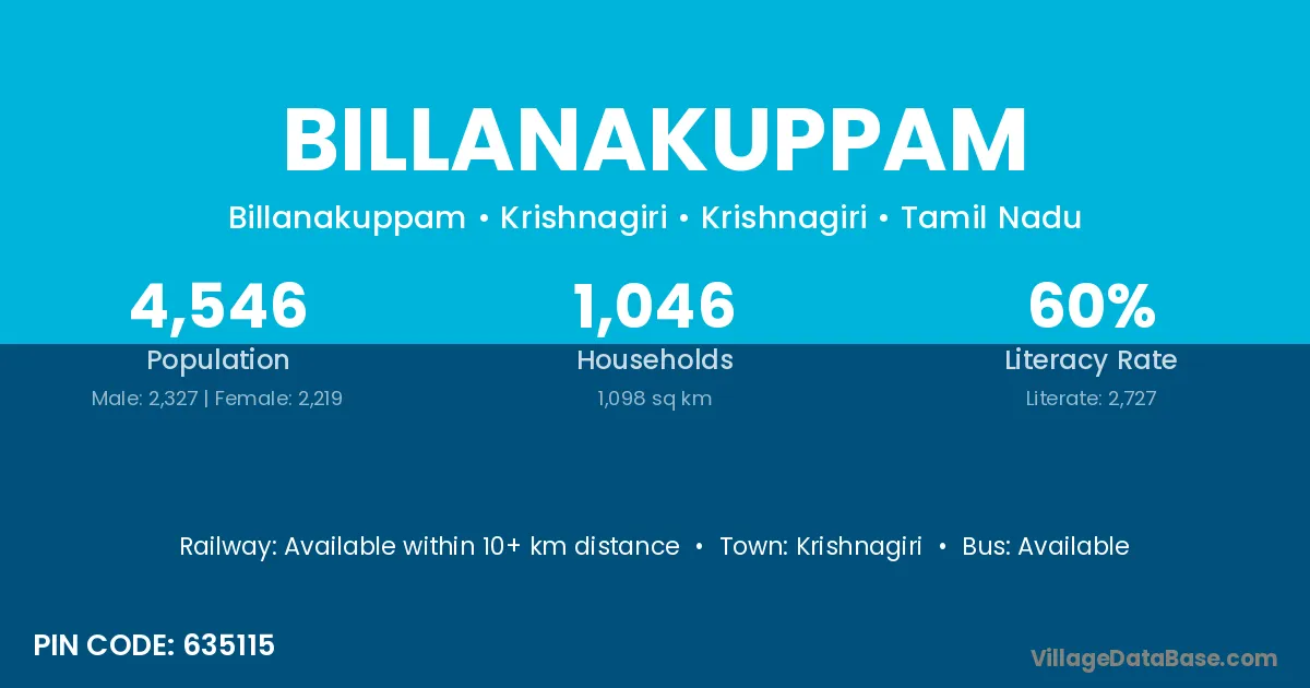 Krishnagiri is the nearest town to Billanakuppam village for major economic activities