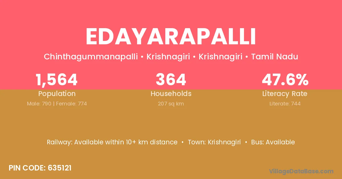 Krishnagiri is the nearest town to Edayarapalli village for major economic activities