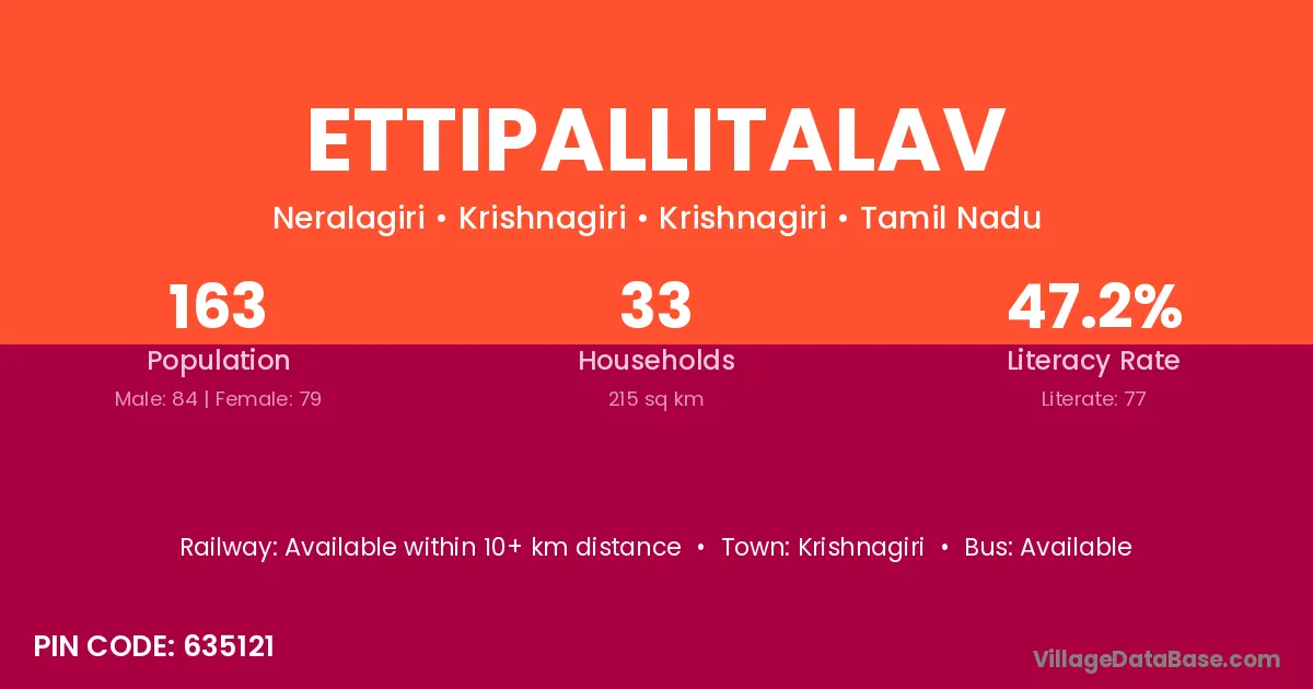 Krishnagiri is the nearest town to Ettipallitalav village for major economic activities