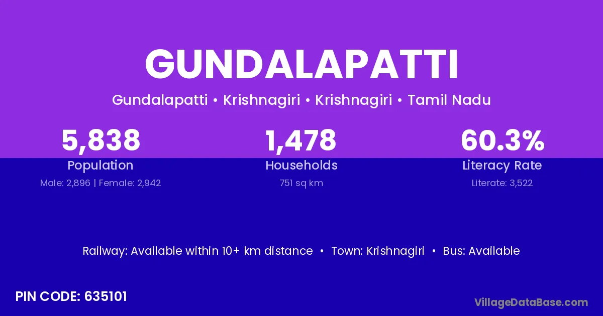 Krishnagiri is the nearest town to Gundalapatti village for major economic activities