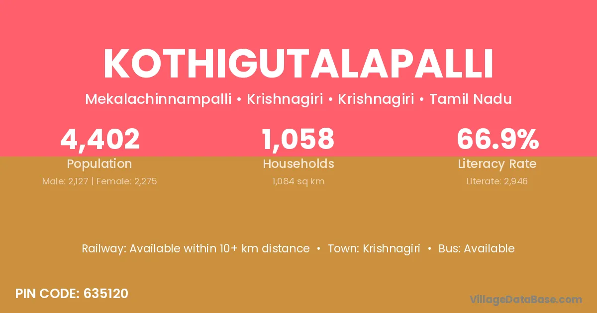 Krishnagiri is the nearest town to Kothigutalapalli village for major economic activities