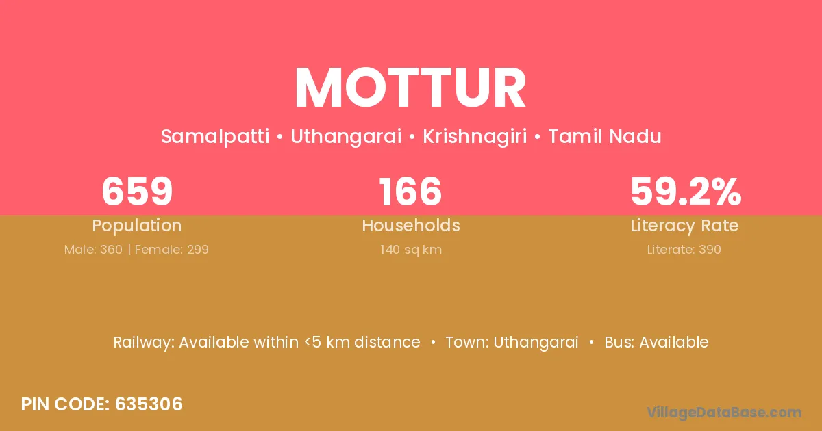 According to Census 2011 information, the village code of Mottur village is 635112.